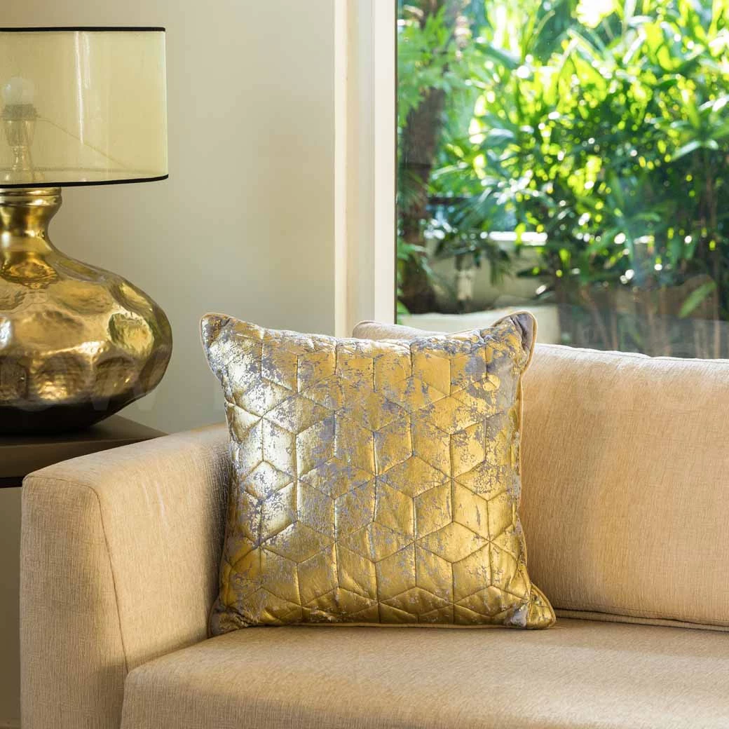 Made of velvet and cotton duck, our Bright Gold Foil Printed Cushion is certain to add a touch of shine and glamour to your surroundings.