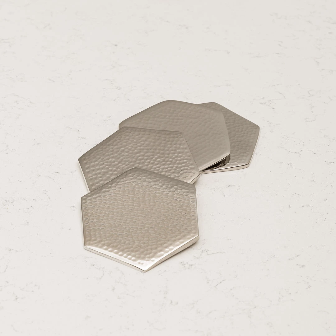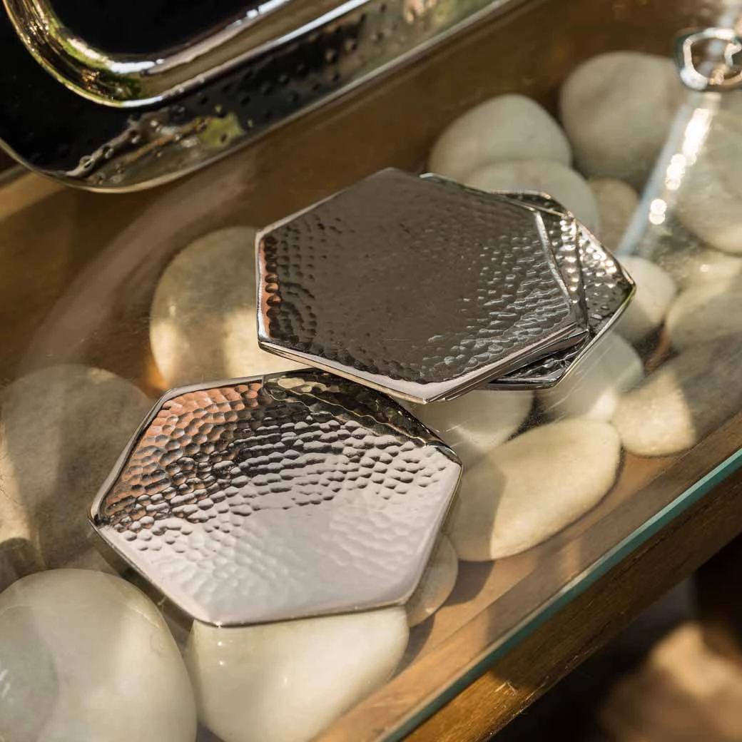 Bring a contemporary look to your table setting with these eye-catching silver hammered coasters.