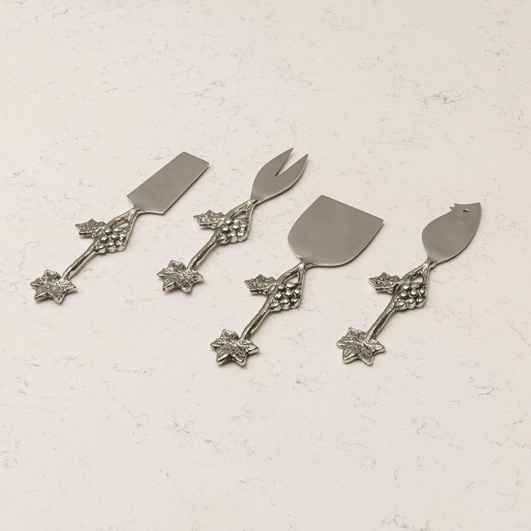 Our stunning set of stainless steel and brass cheese knives complement our Grape Wine Cheese Platter. They are designed to accommodate both soft and hard cheese.