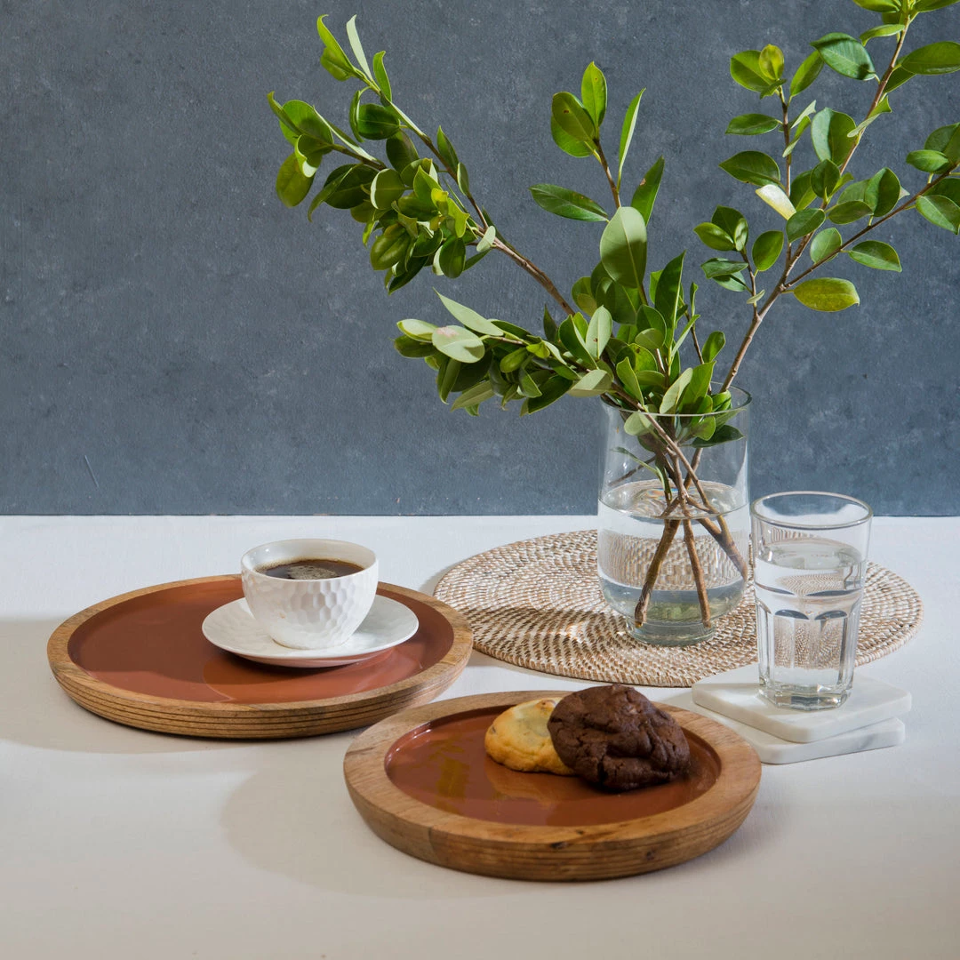 Bring a warm, contemporary style to your home with our Palmer Round Trays.