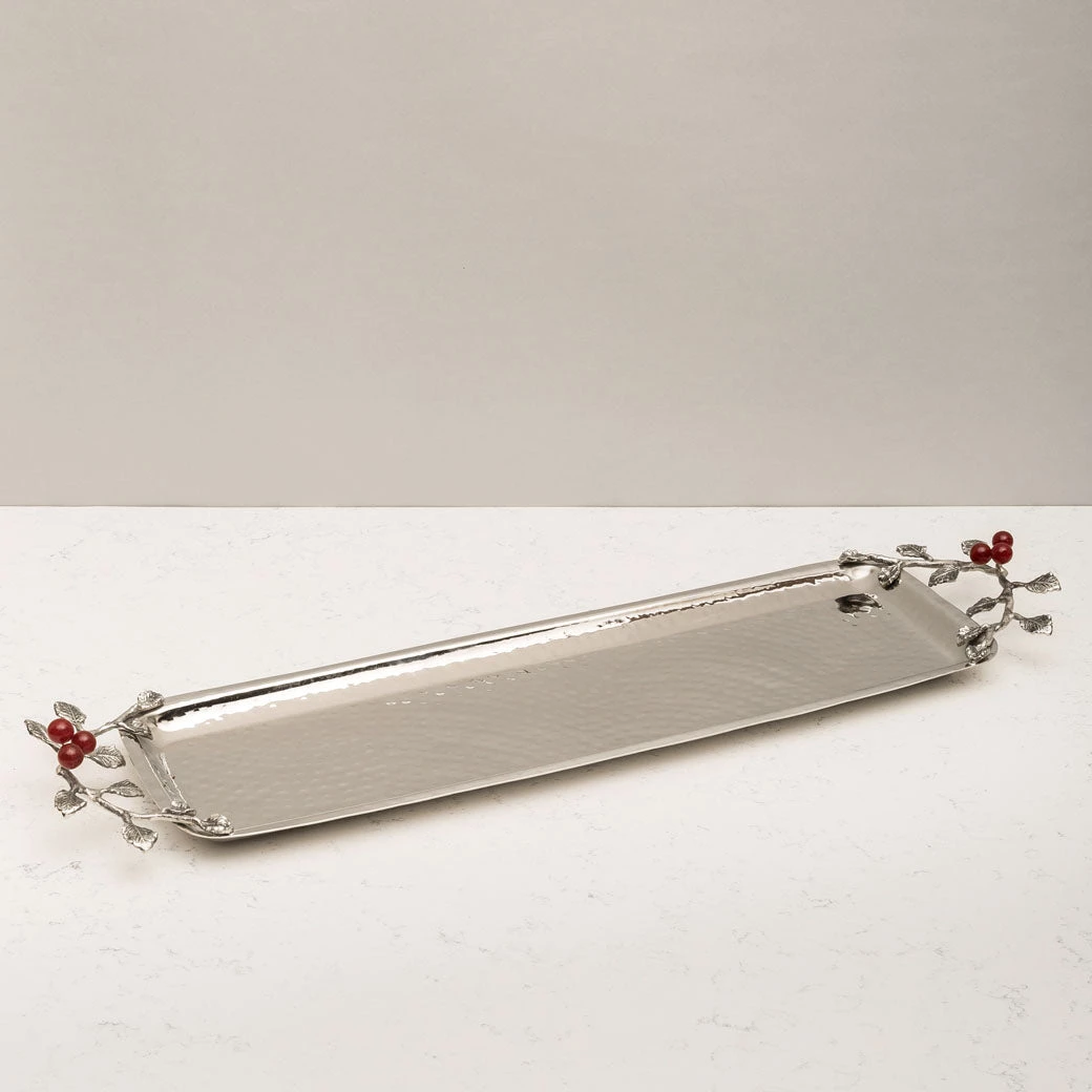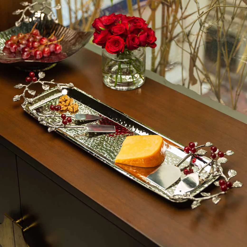 Our Red Berry Rectangular Cheese Platter made of brass is the perfect accessory for serving cold appetizers, charcuterie and cheese.