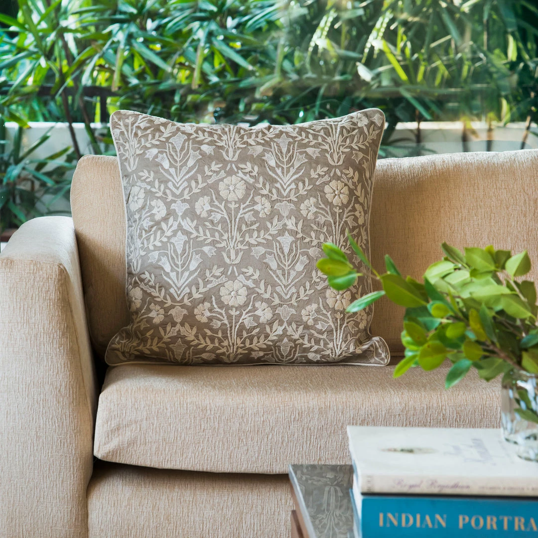 Add a touch of earthy charm to your surroundings with our Sandra Embroidered Cushion.
