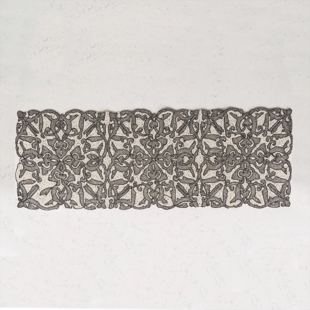 Our Silver Moon Beaded Runner with its intricate beadwork is sure to add elegance to your dining table any time of the year.