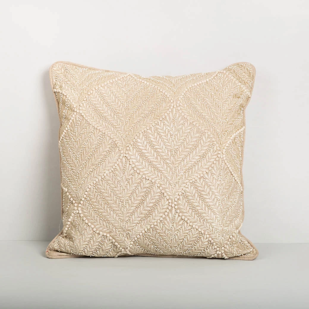 Striking a balance between neutral colours and textures, this cushion with its french knot embroidery is sure to add a minimalistic style to your living space.