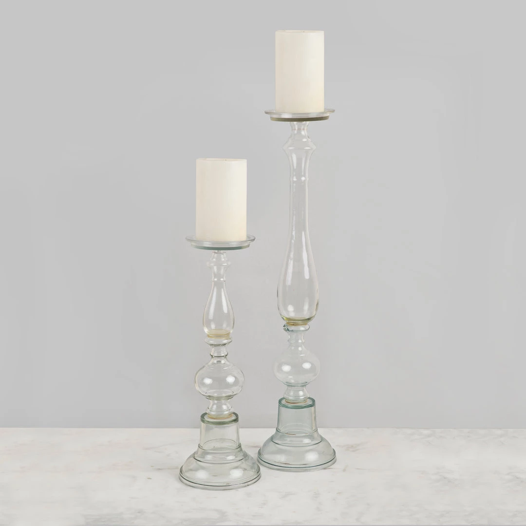 Add a finishing touch to your living space with our Angelina Candle Holders which are crafted of clear glass.