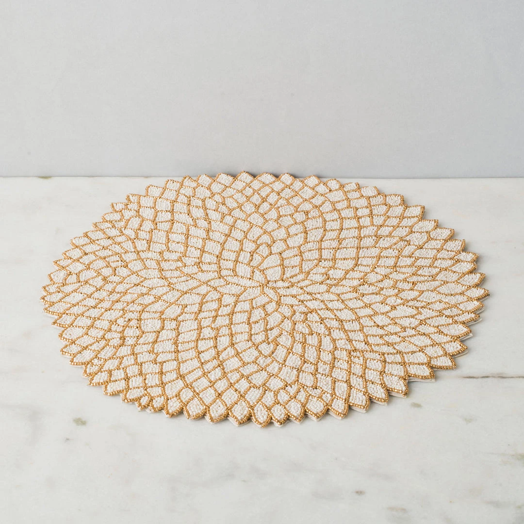 Add an elegant touch to your dining table with our Dahlia Beaded Placemat.